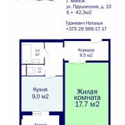 Метраж квартиры: по СНБ 42.3 м2, общ. 40.2 м2, жил. 17.7 м2, кухня 9 м2