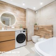 Ванная комната с инсталляцией, биде, большой ванной и новой мебелью, тёплый пол и новый полотенцесушитель. Стиральная машина полностью обслужена.