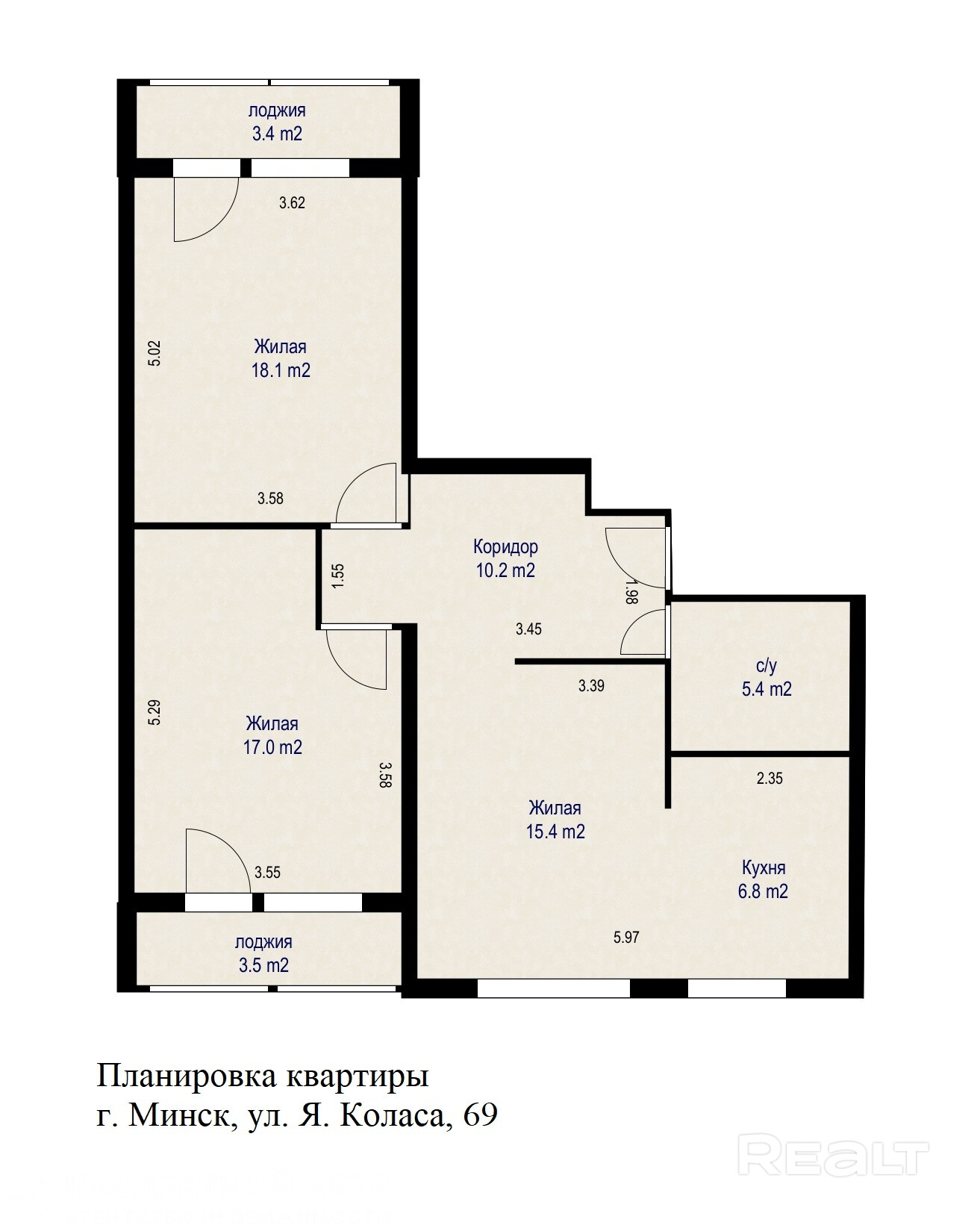 Просторная 3-комнатная квартира с отличным ремонтом по ул. Якуба Коласа, д.69