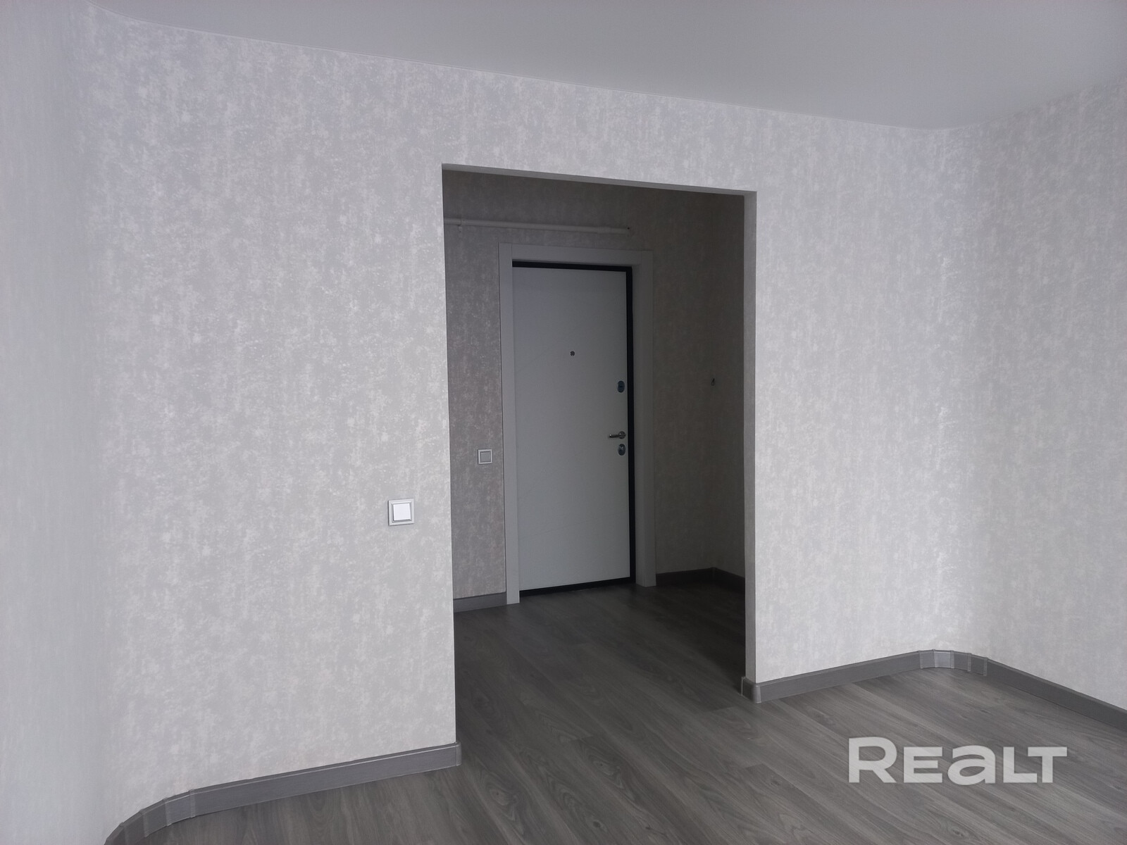 Большая светлая комната позволит зонировать пространство и удобно расставить мебель. В широких коридорах достаточно пространства для организации нескольких мест хранения.