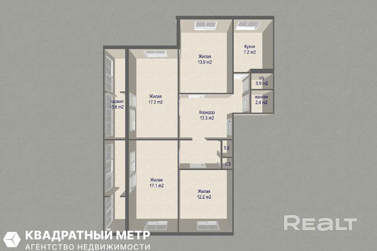 Просторная 4-комнатная квартира с двумя лоджиями возле Лошицкого парка