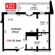 Площадь по СНБ: 51.2 м2 — простор, который редко встретишь в евродвушках