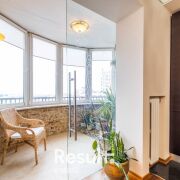 Лоджия остеклена стеклопакетами ПВХ, оборудована зона отдыха в виде декоративного каскадного миниводопада с живыми растениями.