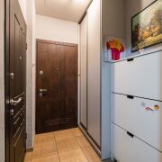 Чистый, аккуратный подъезд, тамбур на две квартиры закрывается на ключ (оборудованы места для хранения - шкаф-купе и полка для обуви).