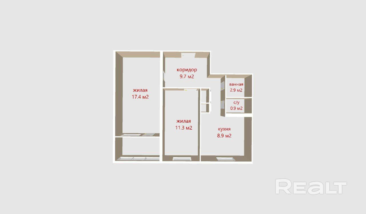 - Жилые комнаты: 17,4 кв.м., 11,3 кв.м.