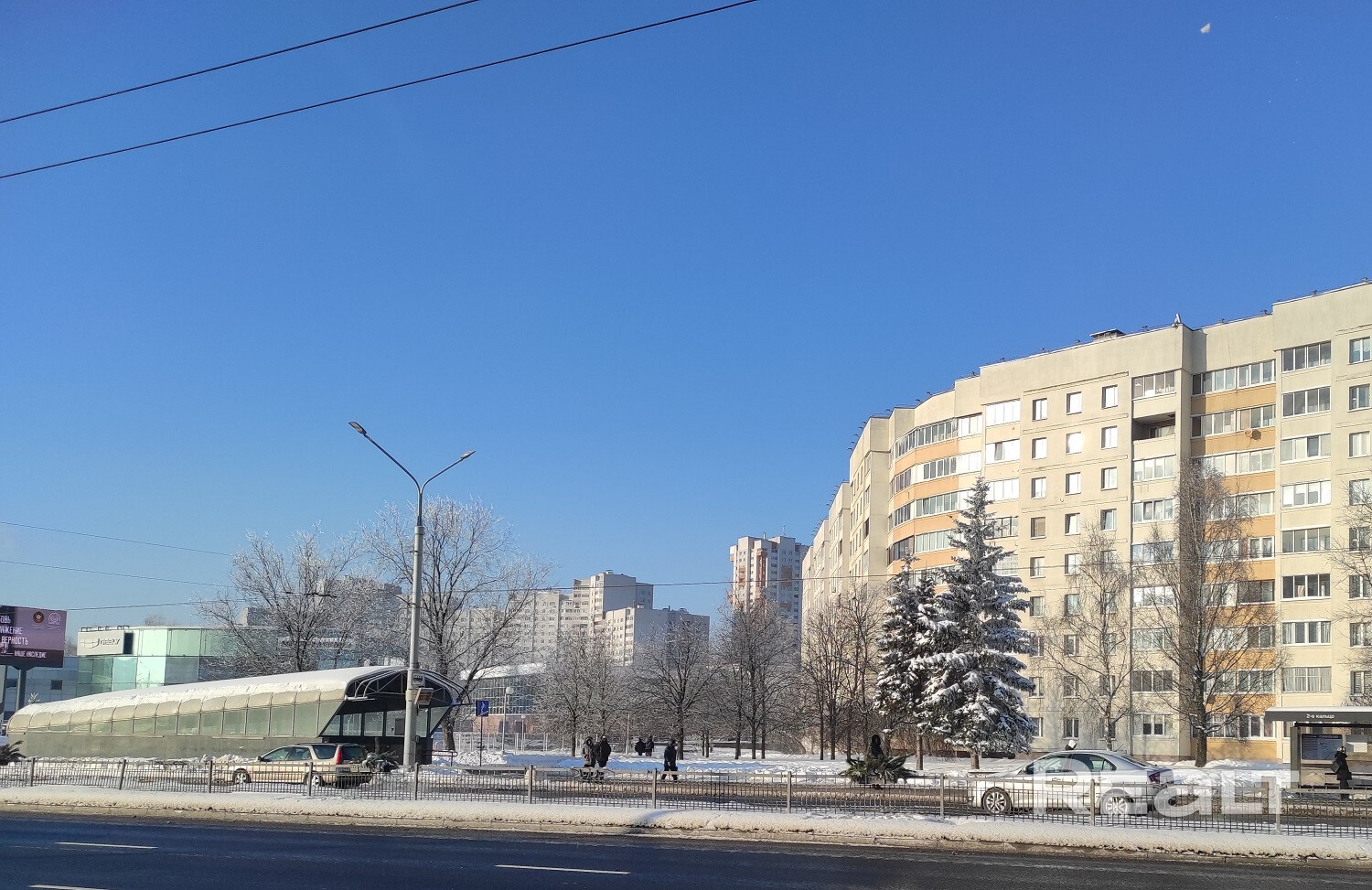Наземный транспорт в любую точку города. 10-15 минут до метро Немига или метро Пушкинская.