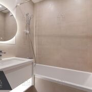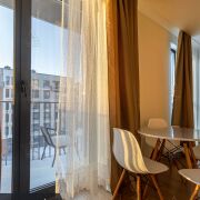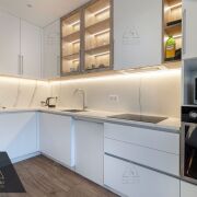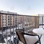 В квартире установлены распашные стеклопакеты в алюминиевом профиле и имеются видовые балконы. В доме работают лифты, спускающиеся на нулевой этаж с кладовыми площадью 7,79 м2, а также предусмотрена подземная система сбора мусора.