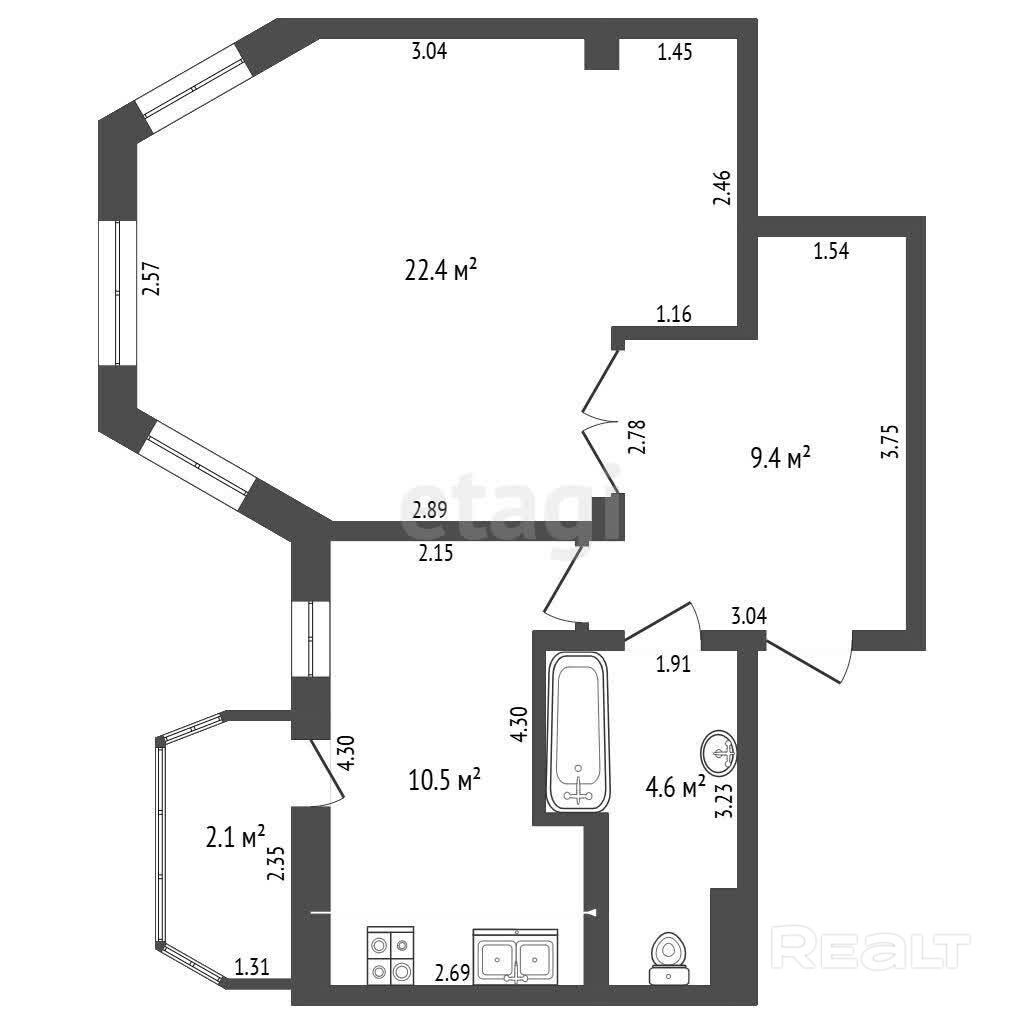 • Большая кухня 10,5 м2 с выходом на застеклённый балкон