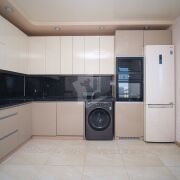 - Функциональный кухонный гарнитур оснащен современной встроенной бытовой техникой.