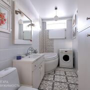 - Пол и стены в санузле облицованы плиткой, установлена большая угловая ванна. Угловая форма имеет привлекательный внешний вид и отлично украшает интерьер ванной комнаты. Сантехника в отличном состоянии.