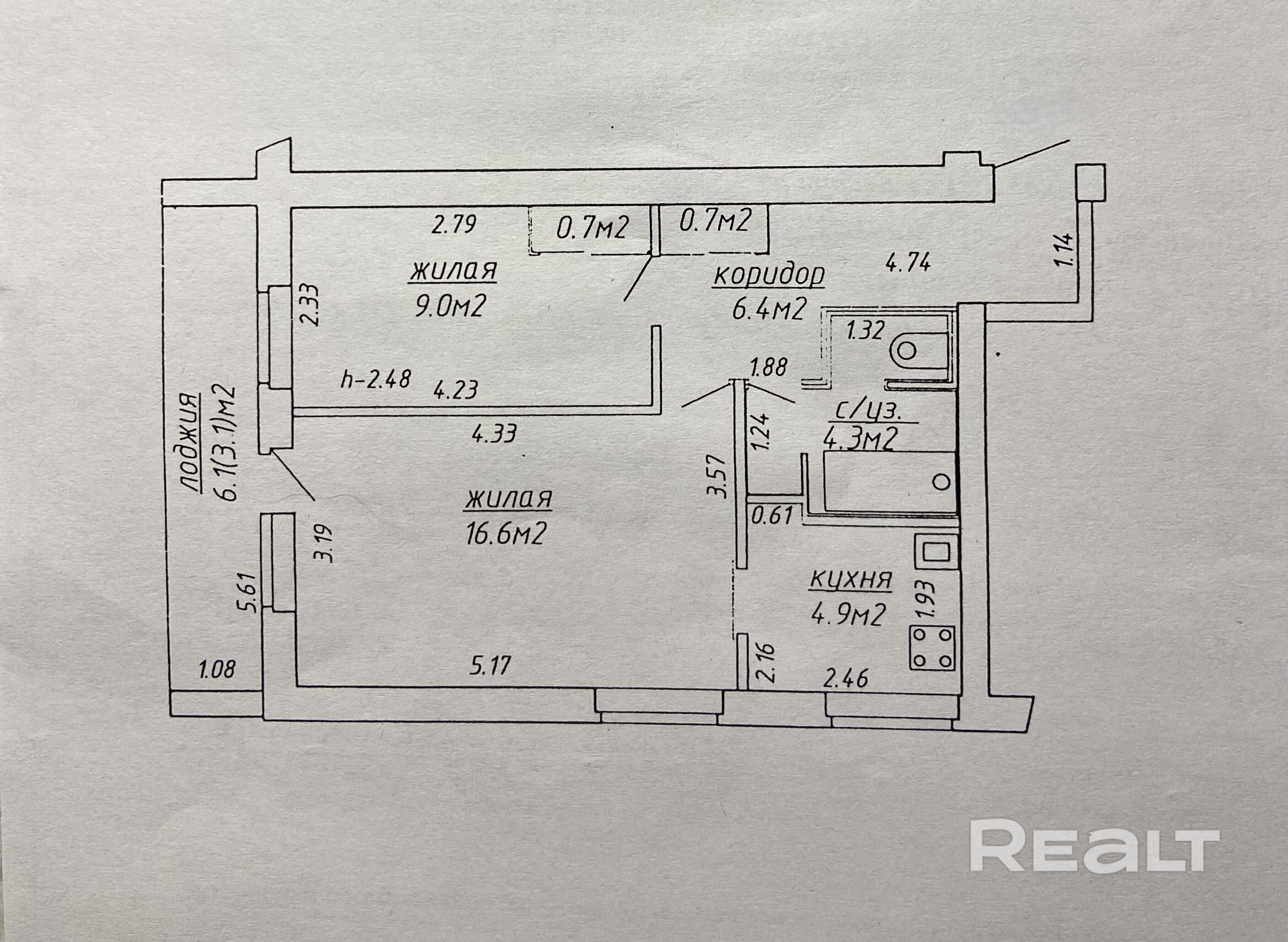 (*;*) Высота потолков h=2.48 м;