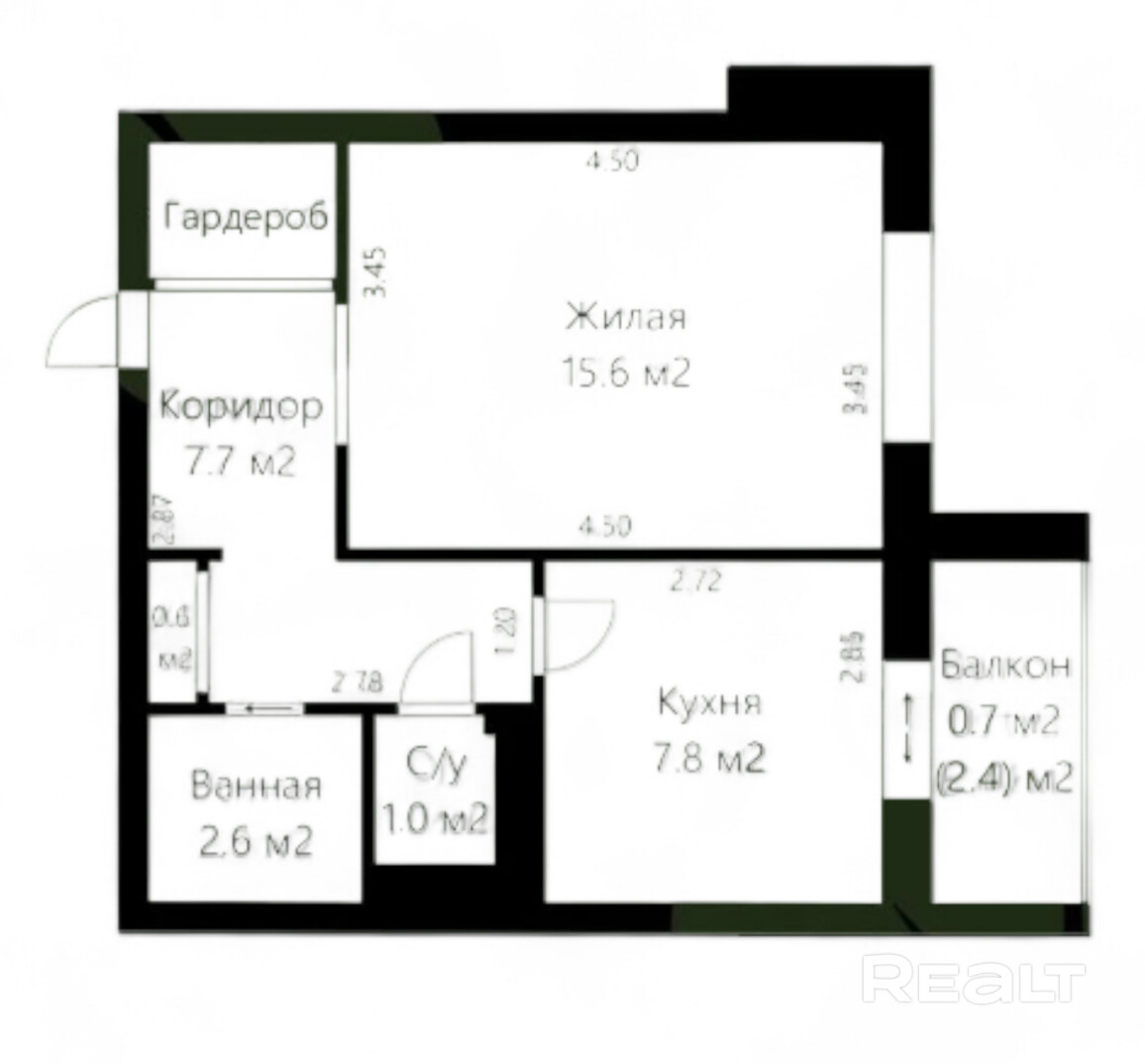 15.6 м²