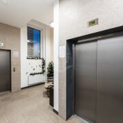 Панорамный лифт, также имеется грузопассажирский. Благоустроенный двор.