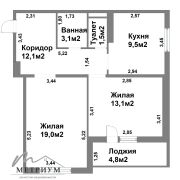 • Кухня: 9,3 м2 — просторная кухня, где можно не только готовить, но и проводить время с близкими.