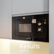 Встроенная кухня с варочная панелью, посудомоечной машиной, микроволновой печью и холодильником.