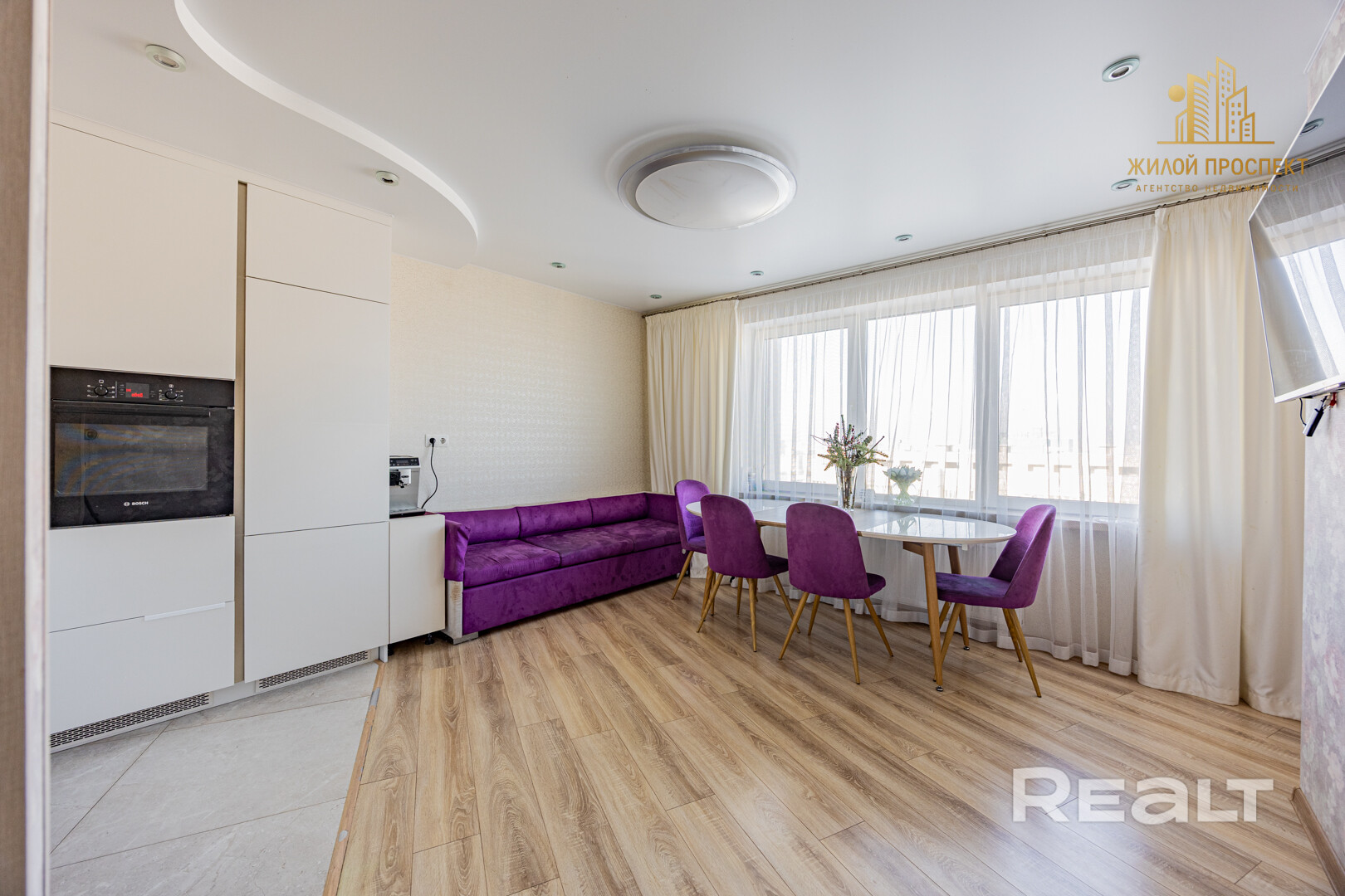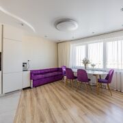Квартира полностью готова к проживанию. Выполнен качественный современный ремонт с использованием надёжных и экологичных материалов. Большие оконные проёмы наполняют пространство естественным светом и создают ощущение простора и уюта.