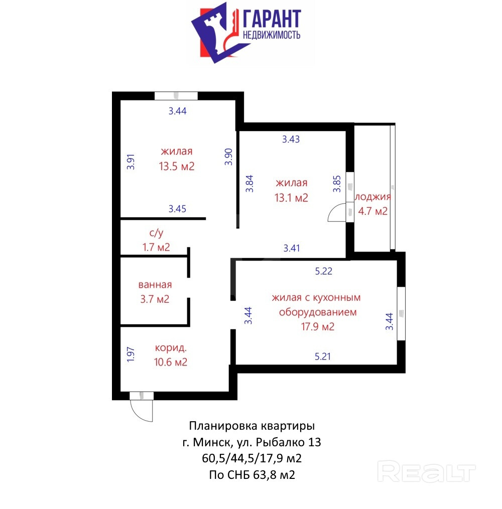 - Просторная планировка: Большая кухня-гостиная и 2 ОТДЕЛЬНЫЕ комнаты. Площадь квартиры по СНБ 63,8.