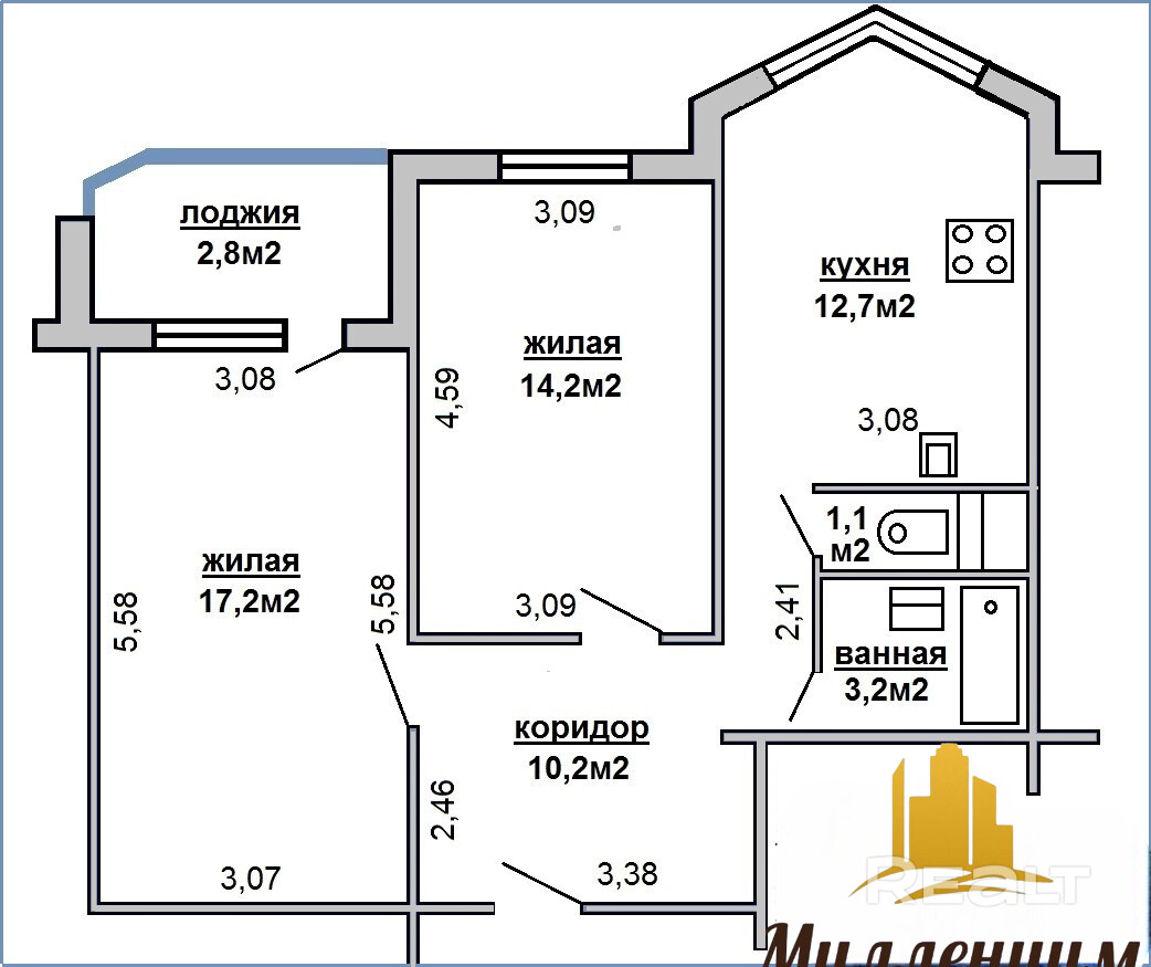 12.7 м²