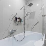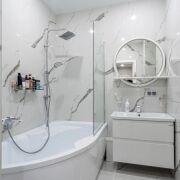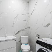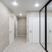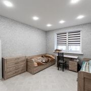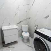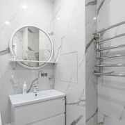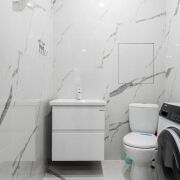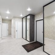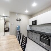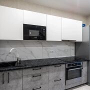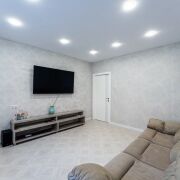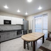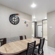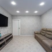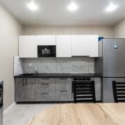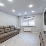 Три квадратные комнаты по 16 метров, одна с встроенной кухней, техникой и застекленной лоджией. Два санузла полностью укомплектованы. Все новое: ламинат, обои, плитка, двери, сантехника, светильники, металлическая входная дверь.