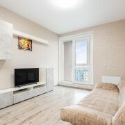 -Квартира расположена на 22 этаже современного 24-этажного дома. Из окон открывается шикарный панорамный вид на жилой квартал, без соседних окон напротив - это редкое и практичное преимущество. Высота этажа и отсутствие прямых соседей гарантируют тишину и спокойствие в любое время суток.