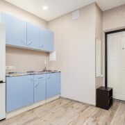 -В прихожей установлен вместительный шкаф-купе, в кухне - навесные шкафы, холодильник. Это готовое решение, позволяющее сразу заехать и жить без дополнительных вложений.