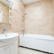 -Санузел совмещенный, облицован керамической плиткой, производства Италии.