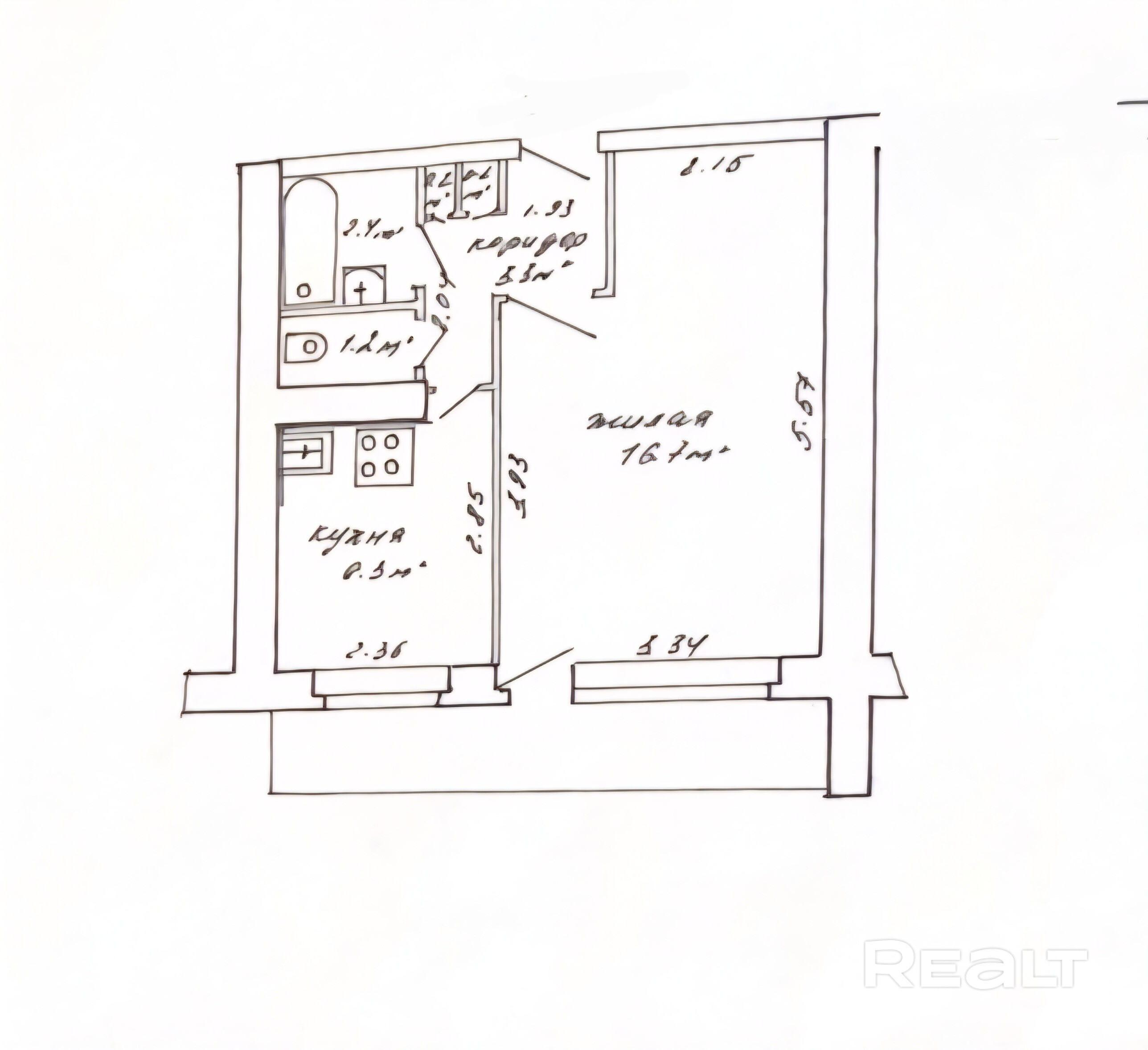 Квартира расположена на 3 этаже девятиэтажного дома. Общая площадь по СНБ 34.1 м2.
