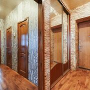 Прихожая и коридор: площадью 4.2м2 входная дверь металлическая, во всю стену установлен шкаф-купе для хранения вещей.