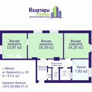 Метраж квартиры общ. 67.9 жил. 46.4 кухня 7.9 м2