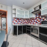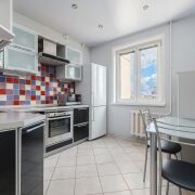 -Кухня организована функционально и удобно для повседневной жизни: напольная плитка устойчива к нагрузкам, рабочая зона защищена керамикой, встроенный гарнитур с качественной фурнитурой и встроенной техникой выглядит цельно и аккуратно. Пространство хорошо освещено, есть место и для готовки, и для спокойных семейных ужинов.
