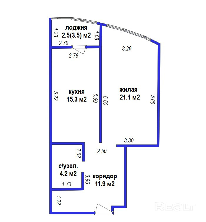 - Площадь квартиры по СНБ - 55 кв.м., общая площадь квартиры составляет 52,5 кв.м., жилая - 21,1 кв.м., просторная кухня 15,3 кв.м. коридор 11,9 кв.м. высота потолков 2.7 м