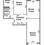 Санузел раздельный, кухня 7,1 м2 достаточная для размещения обеденной зоны и зоны отдыха. Вместительная и функциональная прихожая со шкафами, что позволяет эффективно использовать пространство и сохранять порядок.
