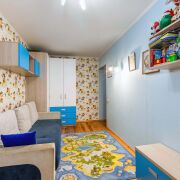 - Детская комната оформлена функционально и живо. Тематические обои создают позитивное настроение, при этом не утомляют. Натуральное напольное покрытие практично и комфортно для повседневной жизни. Рабочее место организовано у окна, есть чёткое зонирование для учёбы, отдыха и хранения.