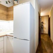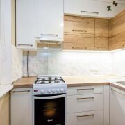 - Кухня выполнена в современном стиле с акцентом на удобство. Светлые фасады визуально расширяют помещение, встроенная мебель смотрится аккуратно и цельно. Рабочая зона защищена керамической плиткой, напольное покрытие устойчиво к нагрузкам и влаге. Эргономика продумана - здесь удобно готовить и проводить время без ощущения тесноты.