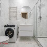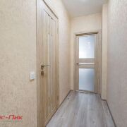 Кухонная зона полностью укомплектована встроенной мебелью и техникой. В коридоре установлен вместительный шкаф-купе. Санузел совмещён и выполнен в современном стиле.