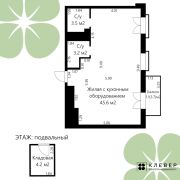 Площадь по СНБ - 53.4 кв.м., 8 этаж из 10