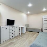 - В квартире выполнен качественный ремонт. Сделана стяжка пола, уложен ламинат, установлены натяжные потолки, окна ПВХ обеспечивают хорошую теплоизоляцию и тишину.