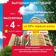 Одним из важных преимуществ приобретения бизнес-апартаментов и административно-торговых помещений именно сейчас являются удобные финансовые инструменты в виде рассрочки от застройщика на срок до 48 месяцев.