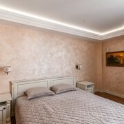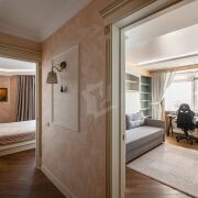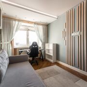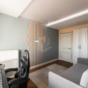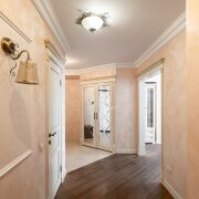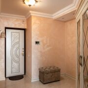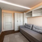 Вся мебель и межкомнатные двери выполнены из массива дуба, что создает особый уют и стиль.