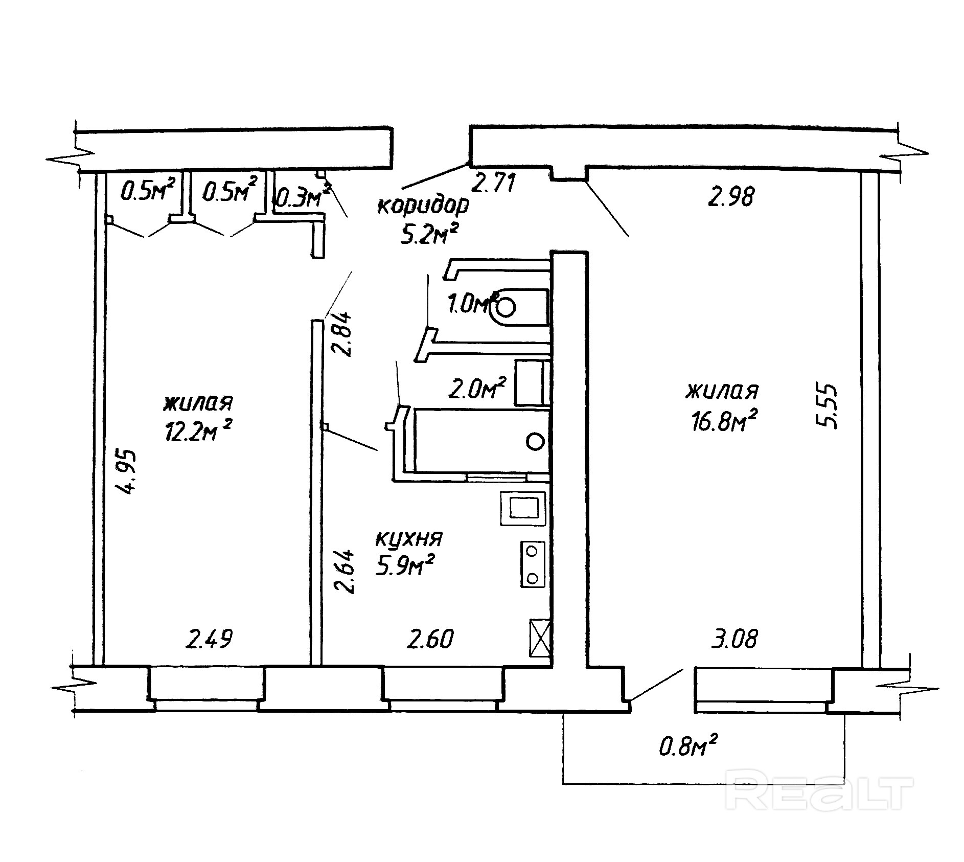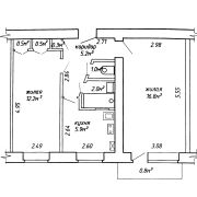 2-комнатная квартира в кирпичном доме с техникой и мебелью общей площадью 45.2 кв.м (по СНБ)