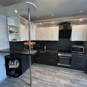 Встроенная кухня полностью оснащена бытовой техникой. Мебель и техника могут остаться по договорённости.