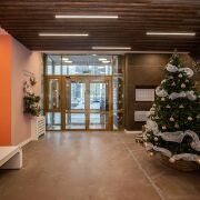 - Удобное лобби в подъезде с пунктом для мытья лап домашних животных.