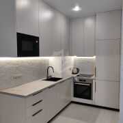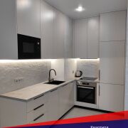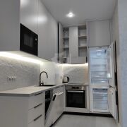 - Душевная кухня: встроенная кухня с современной бытовой техникой — вытяжка, варочная панель, духовка, микроволновка, встроенный холодильник и посудомоечная машина.