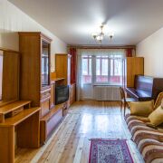 Сделан ремонт, который позволяет сразу заехать и комфортно жить. На окнах стеклопакеты, полы в комнатах деревянные, на кухне и в санузле плитка. Раздельные просторные комнаты по 17 м2.