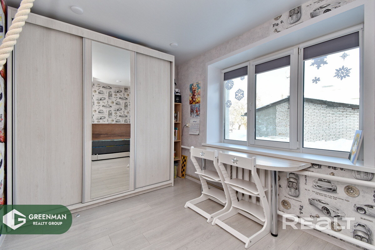 5. Ремонт абсолютно новый (конец 2025 года) выполнен в светлых тонах. Покрытие на полу-ламинат, на стенах обои, потолки натяжные, двери МДФ, окна ПВХ, входная дверь металлическая, есть кухня и вместительный встроенный шкаф в зале.