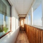 Лоджия: просторная - сквозной проход с двумя выходами из комнаты и из кухни. Застеклена и обшита вагонкой. При желании, есть возможность демонтировать вагонку и пользлваться панорамным остеклением, чтобы любоваться видами на наш прекрасный город. Пространство лоджии позволяет организовать дополнительные места хранения, рабочее место или зону отдыха.