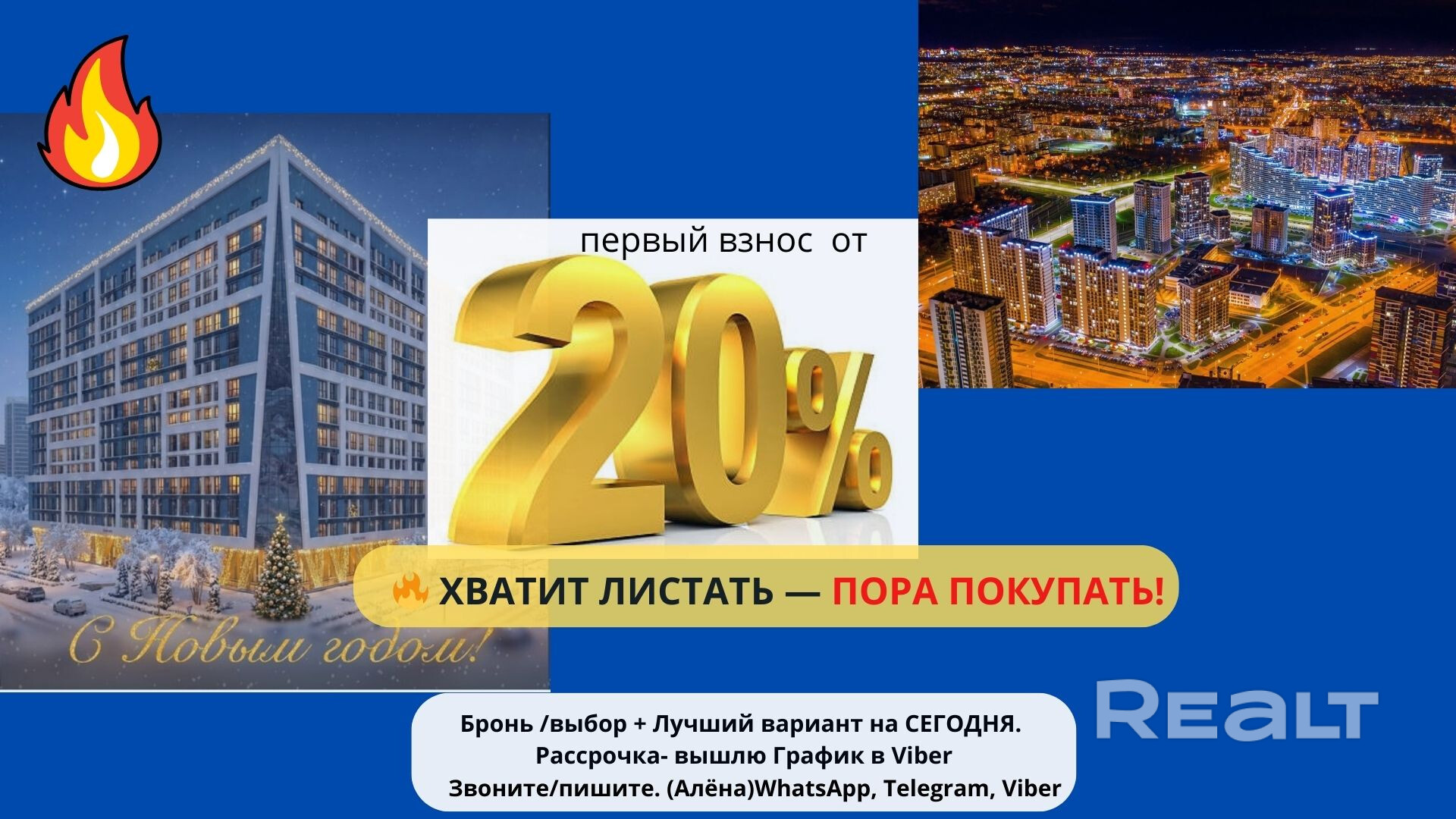 ПРЯМАЯ РАССРОЧКА ОТ ЗАСТРОЙЩИКА! Взнос ВСЕГО от 20%. Планировки и расчёт в Viber.Алёна