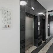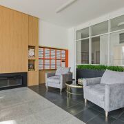 Просторное фойе, гостевой санузел и стойка консьержа создают ощущение уюта и безопасности.