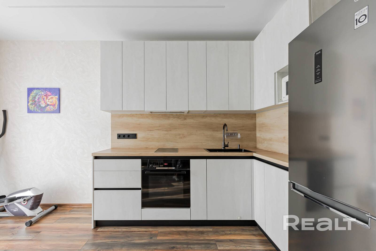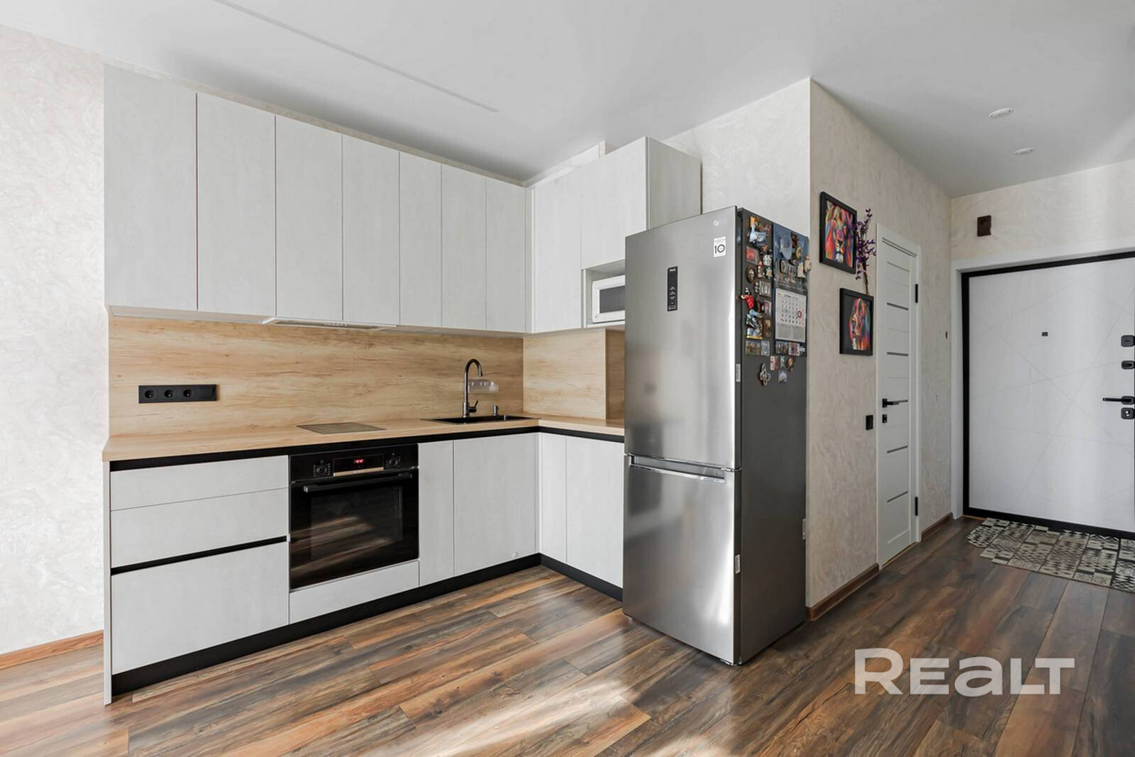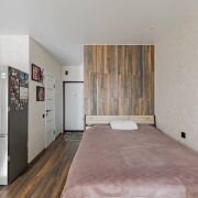 В квартире выполнен современный и качественный ремонт: разведены электропроводка и сантехника, на полу — ламинат, в санузле и на лоджии — стильная плитка. Стены выровнены и оклеены обоями, над спальным местом уложен ламинат. Лоджия застеклена панорамными окнами, создавая уютное пространство для отдыха или работы. В квартире есть просторная гардеробная и шкаф для верхней одежды. Теплая и светлая атмосфера делают это жилье идеальным для комфортного проживания.
