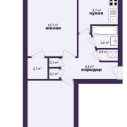 -Общая площадь 46,7 кв.м., жилая - 29,3 кв.м.